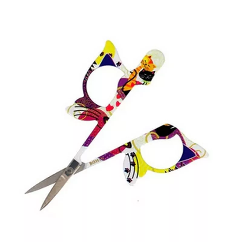 Ciseau à broder motif Chat bleu Longueur totale des ciseaux : 10cm – Lame : 2 cm – Excellente coupe – Impression motif de grande qualité – Facile à prendre en main.