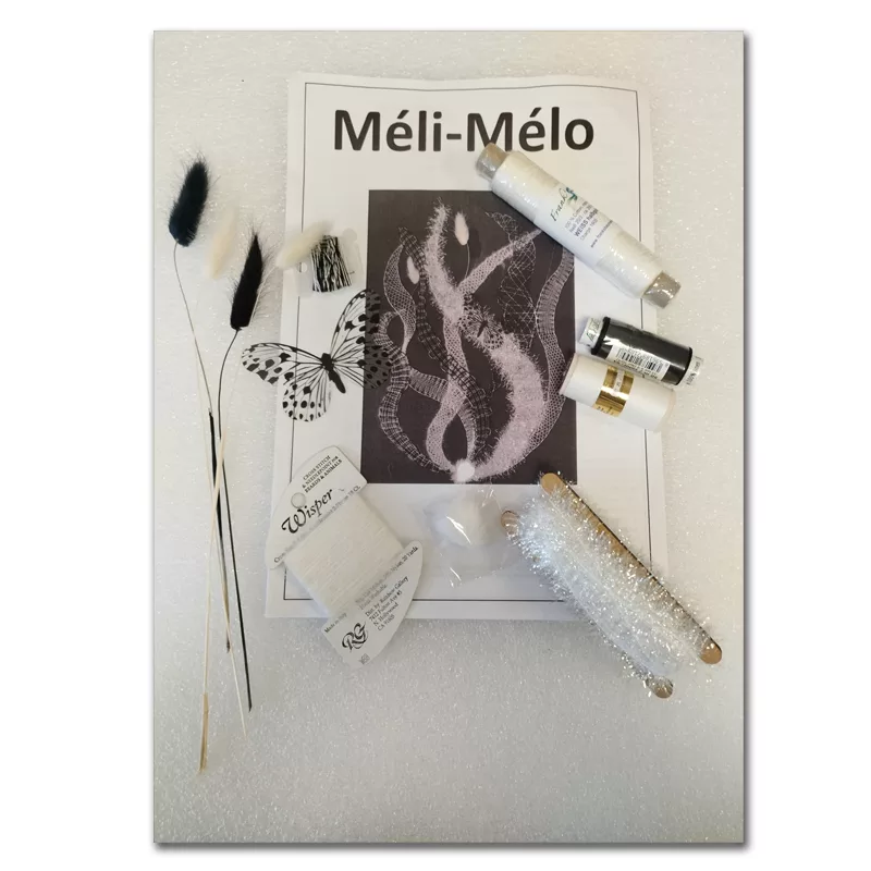 Kit MELI MELO Ce kit contient le modèle avec explications en français, tous les fils nécessaires, fleurs séchées, papillon, pompon.