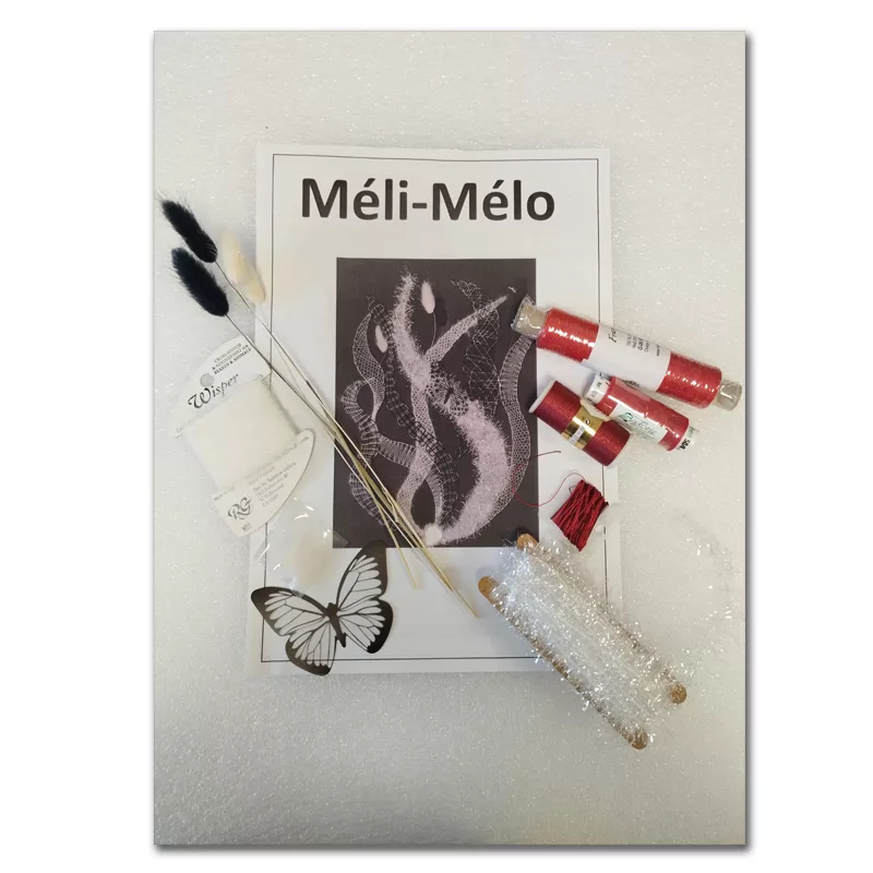 Kit MELI MELO Ce kit contient le modèle avec explications en français, tous les fils nécessaires, fleurs séchées, papillon, pompon.