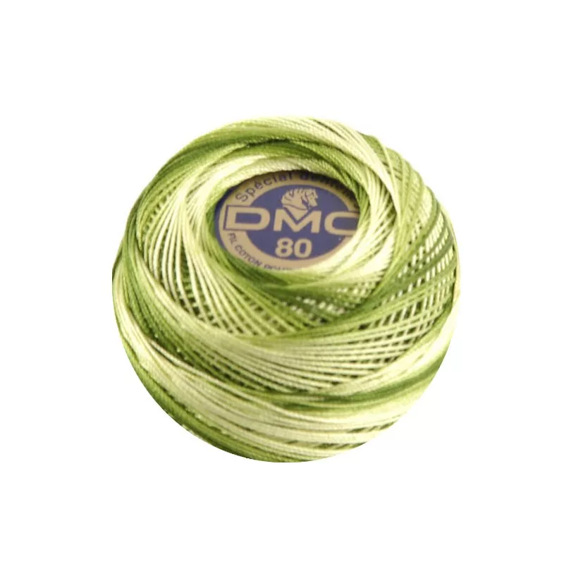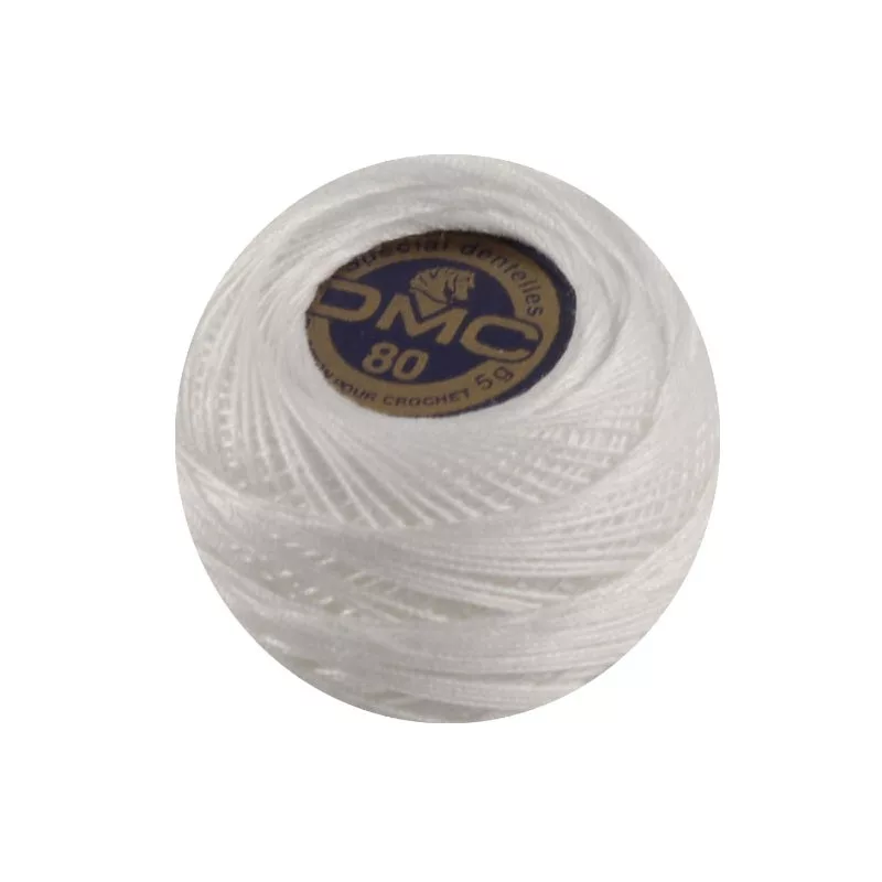 Fil N°80 spécial pour la dentelle, adaptée aux ouvrages fins et délicats, bords de mouchoirs,napperons, cols de dentelle…Pelote de 5 gr, 90mètres environ, en 100% coton longues fibres, 72 nuances dont 12 ombrées,il peut être utilisé avec un crochet n°0,75, lavage à 95°C.